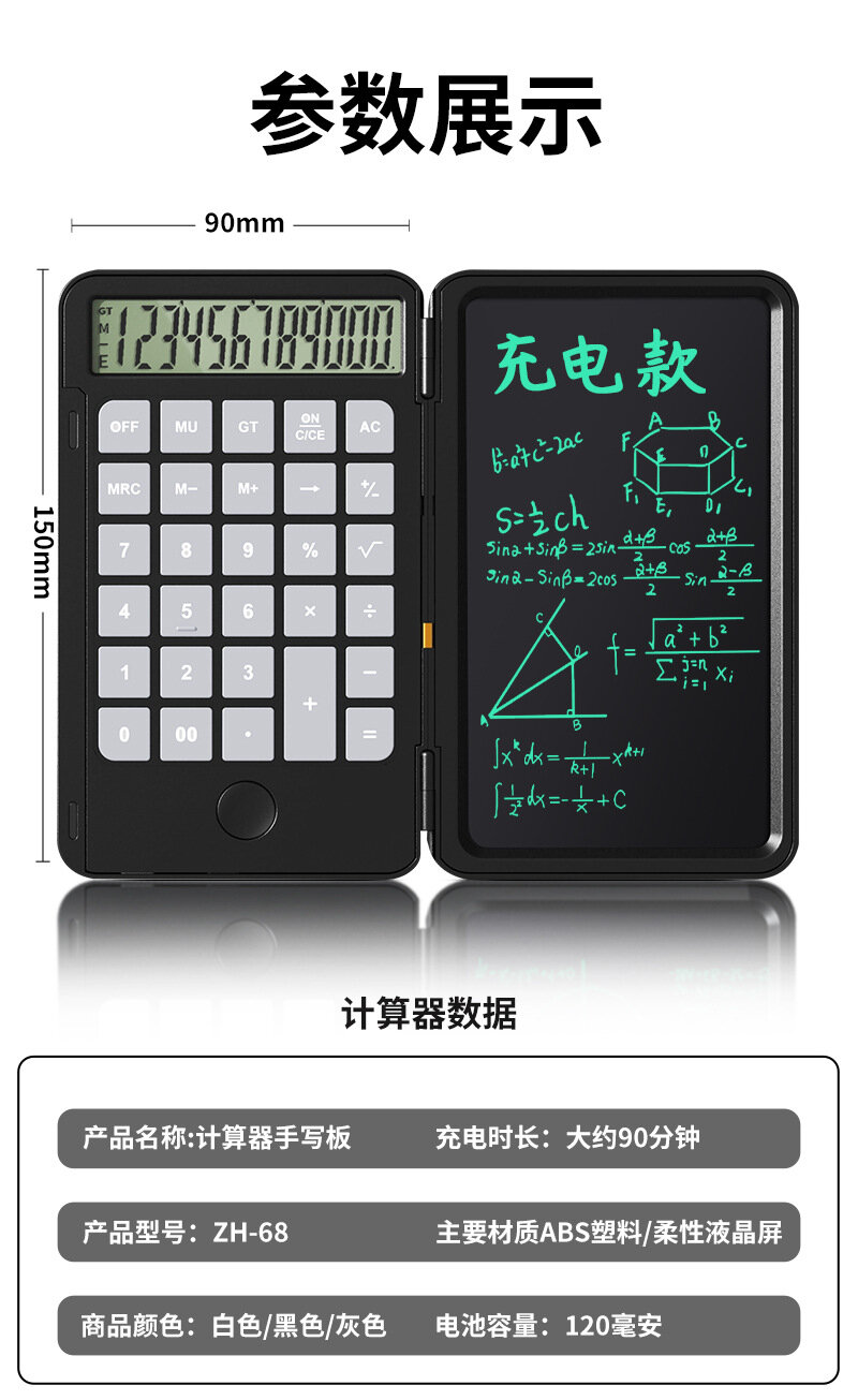 Калькулятор-доска, перезаряжаемый, белый интересное: