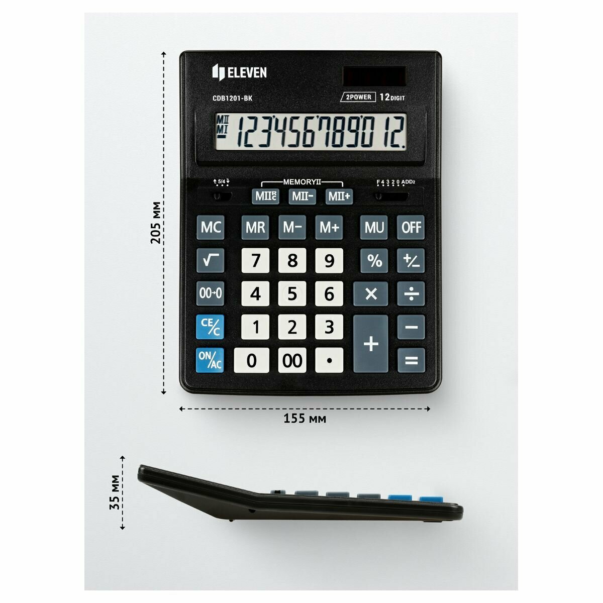 Калькулятор настольный Eleven Business Line CDB1201-BK, 12 разрядов, двойное питание, 155*205*35мм, интересное:
