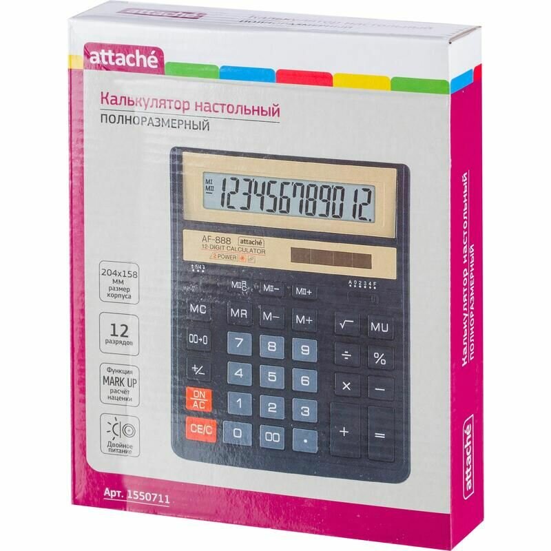 Калькулятор настольный Attache ASF-888 12-разрядный черный 204x158x40 мм интересное: