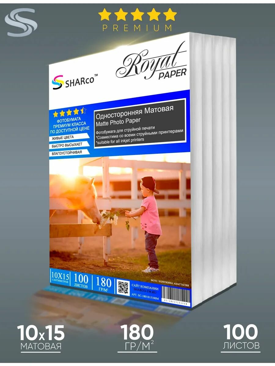 Купить Фотобумага премиум класса Sharco матовая 10x15, 180г, 100 листов Matte Photo Paper