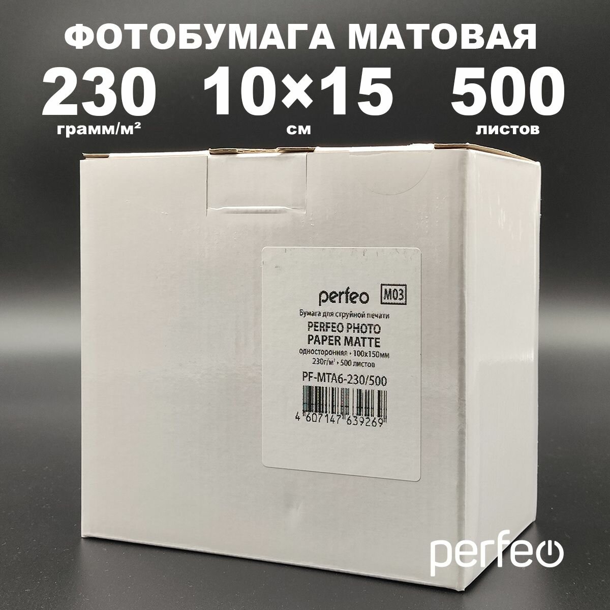 Купить Фотобумага 10x15 (10х15, 10*15) матовая 230 г/м2 500 листов Perfeo / Для принтера, для струйной печати