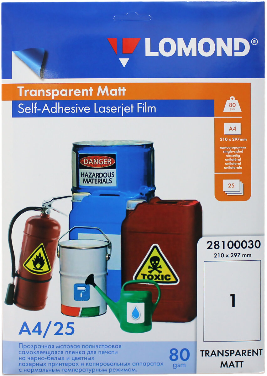 Самоклеящаяся пленка Lomond 28100030 А4 (25 листов) для лазерной печати матовая прозрачная 80г/м2 интересное: