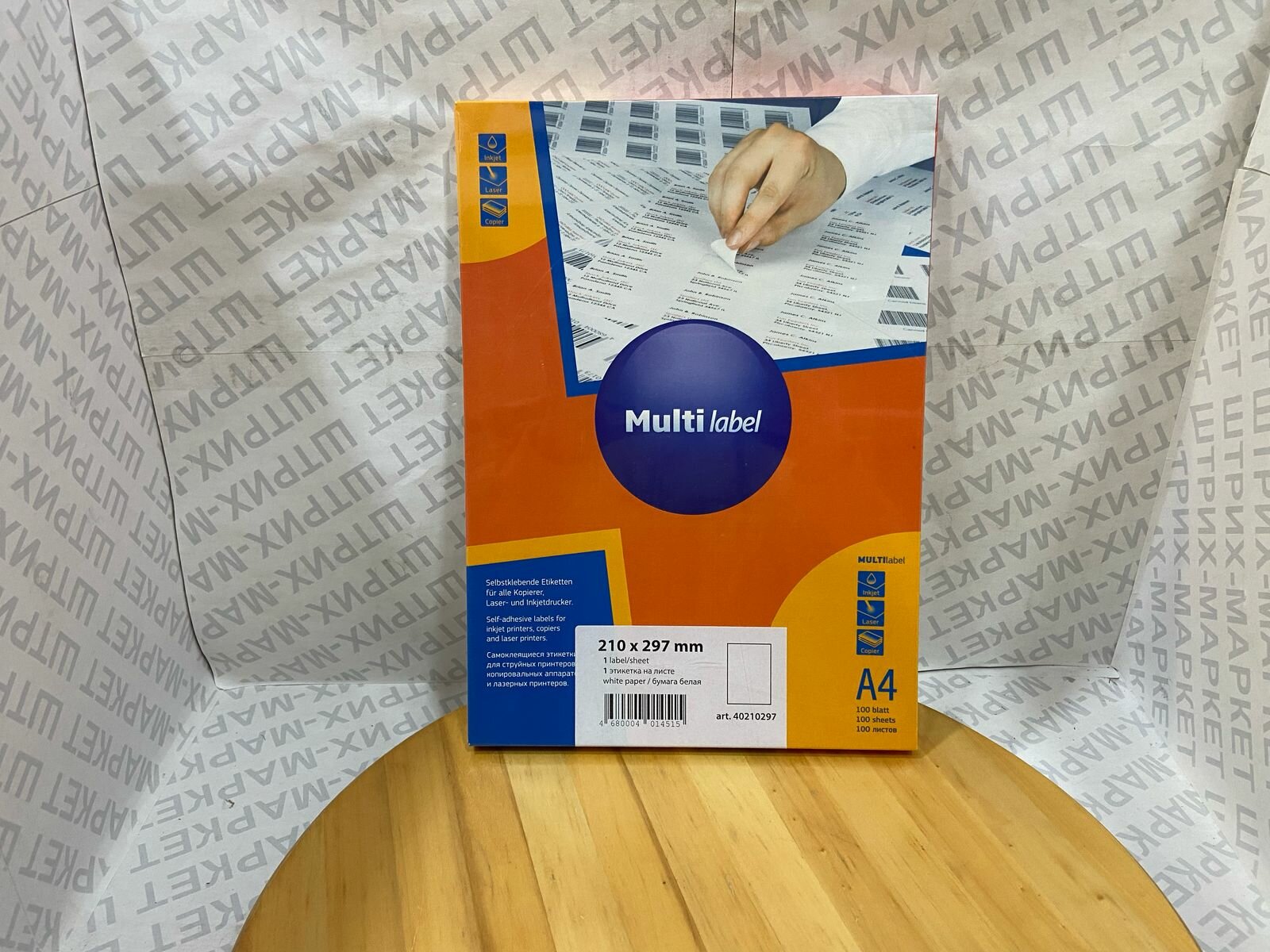 Купить Этикетки 210х297мм на листах А4 (липкая, 1 этикетка на листе)