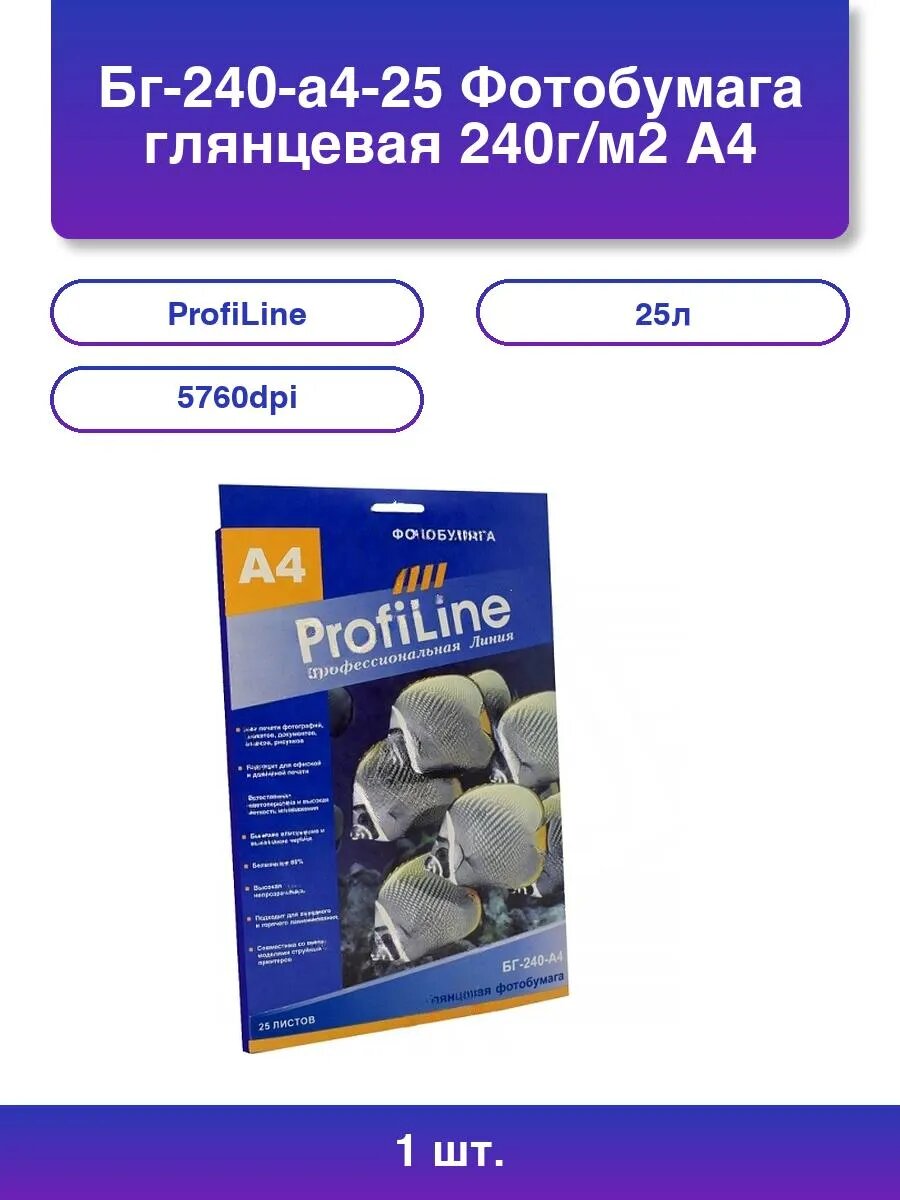Купить 1шт. Бг-240-а4-25 Фотобумага глянцевая 240г/м2 A4 25л