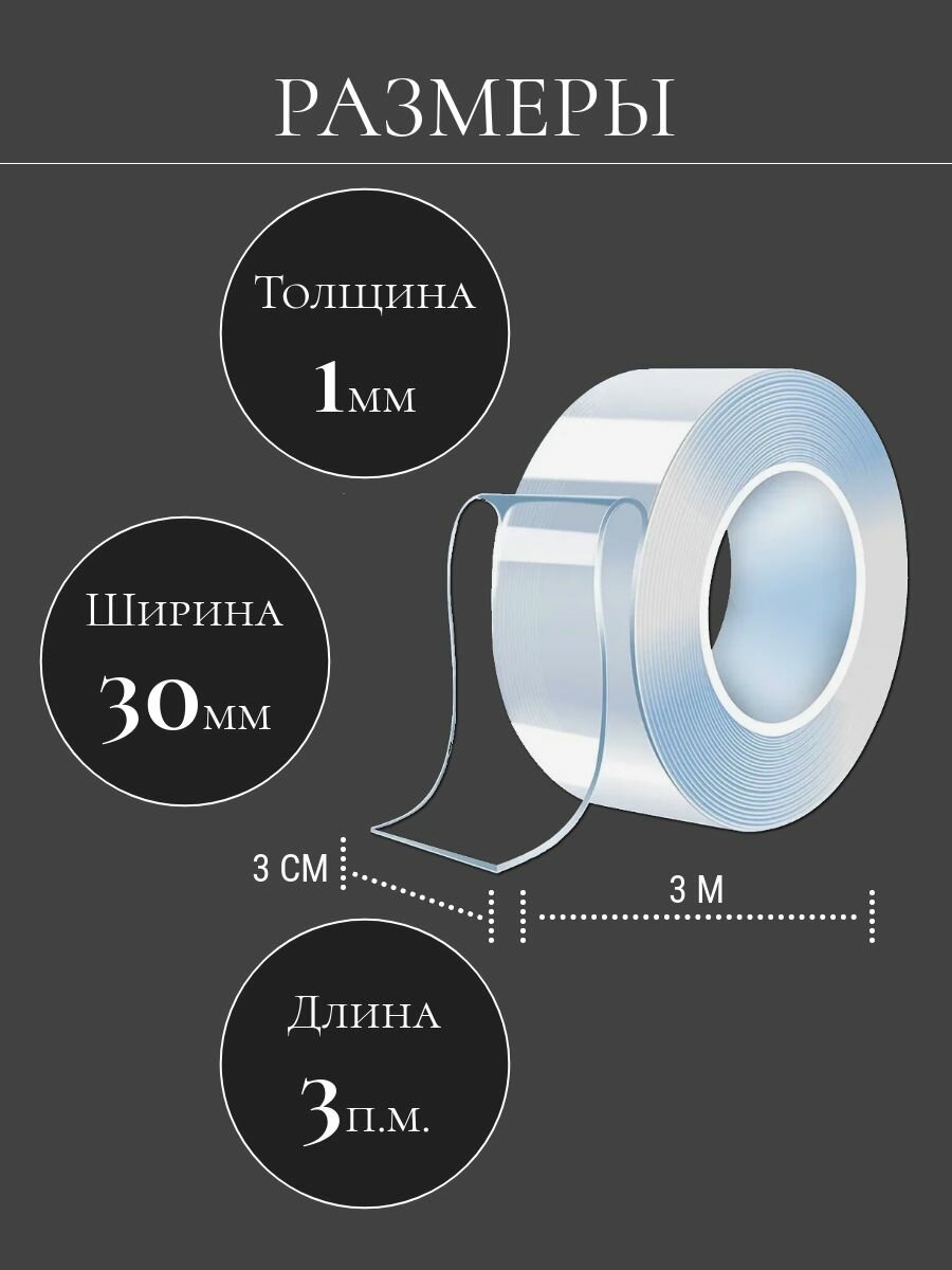 Скотч прозрачный, двухсторонний, клейкая лента прозрачная многоразовая силиконовая, нано лента, 30 мм 3 м, 1 шт. интересное: