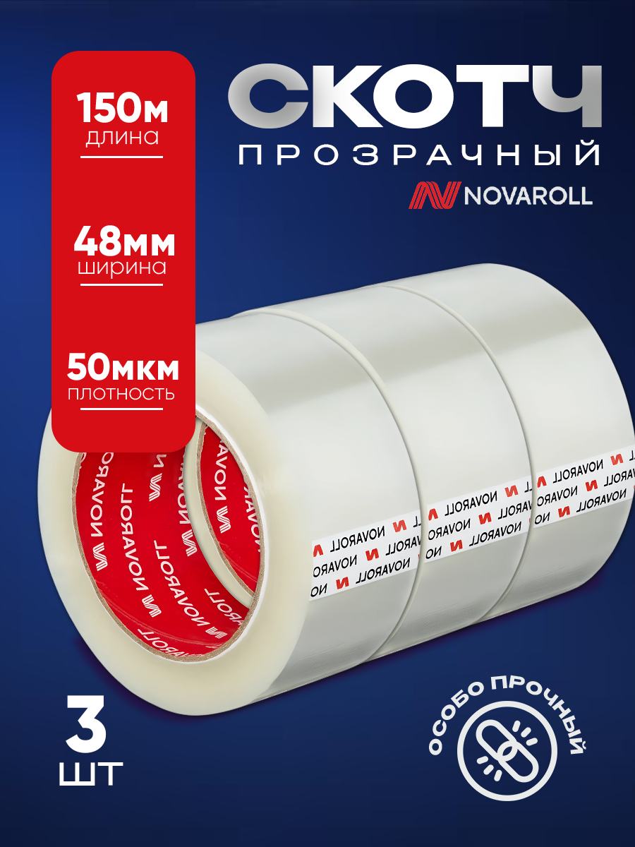 Скотч прозрачный Novaroll, ширина 48мм, длина 150 м, комплект 6 штук