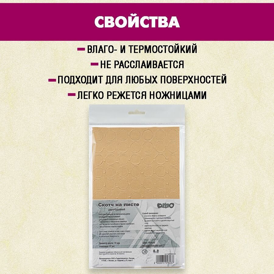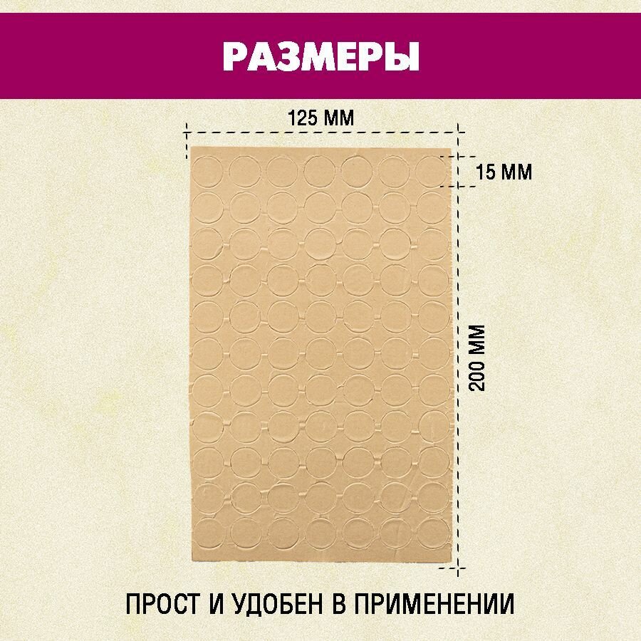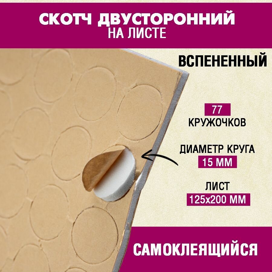 Скотч кнопка двусторонняя на листе 125 х 200 мм "Круг-15 мм" (77 шт.), белая, DMO интересное: