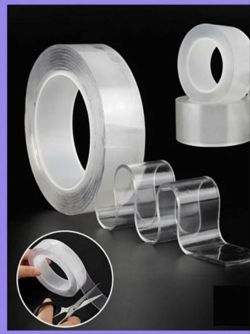 Двухсторонняя клейкая лента 1 метр Ю3-18, прозрачная, канцелярская, многоразовая, крепежный силиконовый скотч интересное: