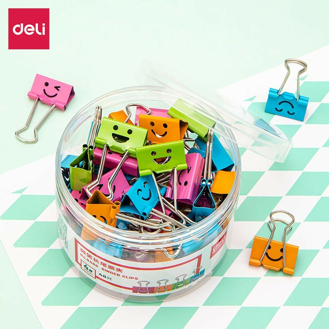 Зажимы Deli 8486 smile 25мм ассорти (упак:48шт) пластиковая туба интересное: