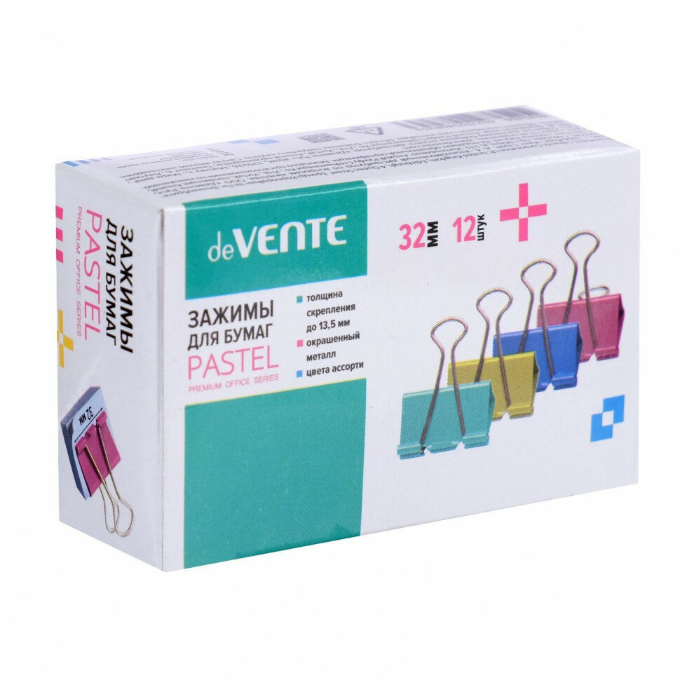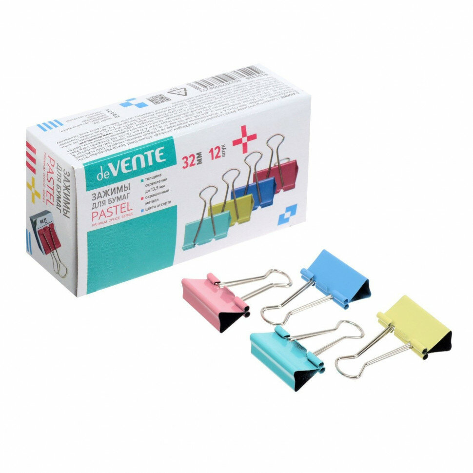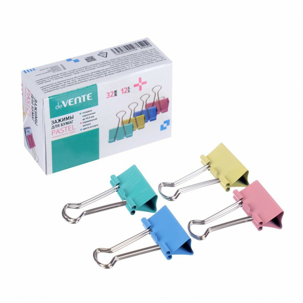 Зажимы цветные 32мм 12шт/уп DEVENTE 4131316 383386 интересное:
