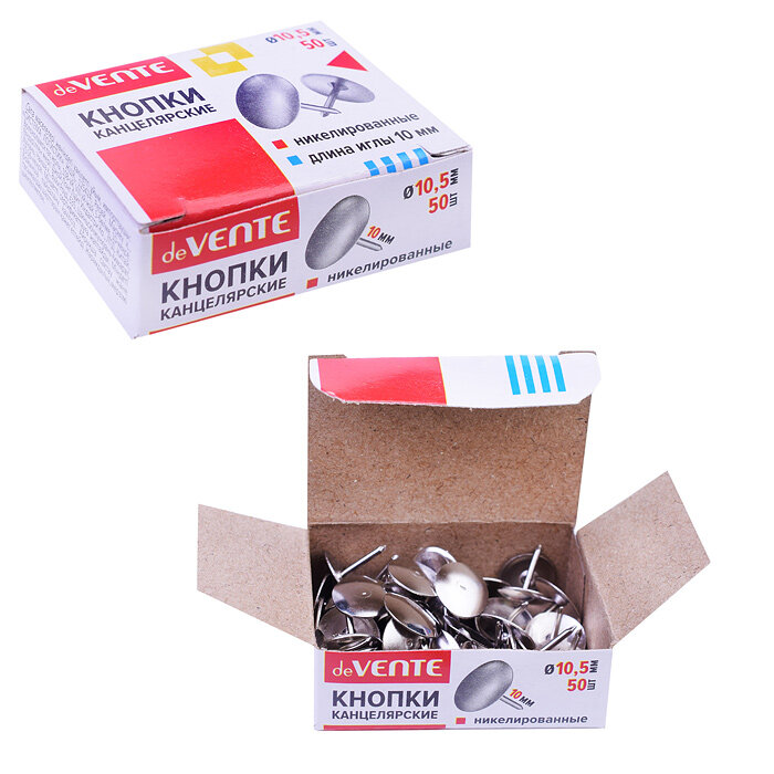 DeVENTE Кнопки-гвозди 50 штук хромированные в картонной упаковке DEVENTE интересное: