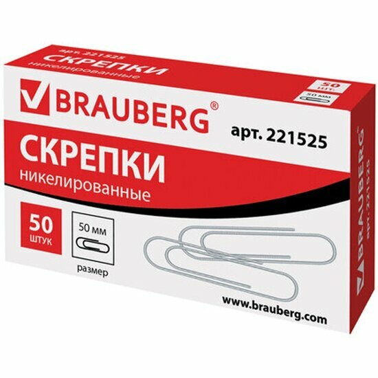 Скрепки Brauberg большие 50 мм, , никелированные, 50 шт, в картонной коробке интересное: