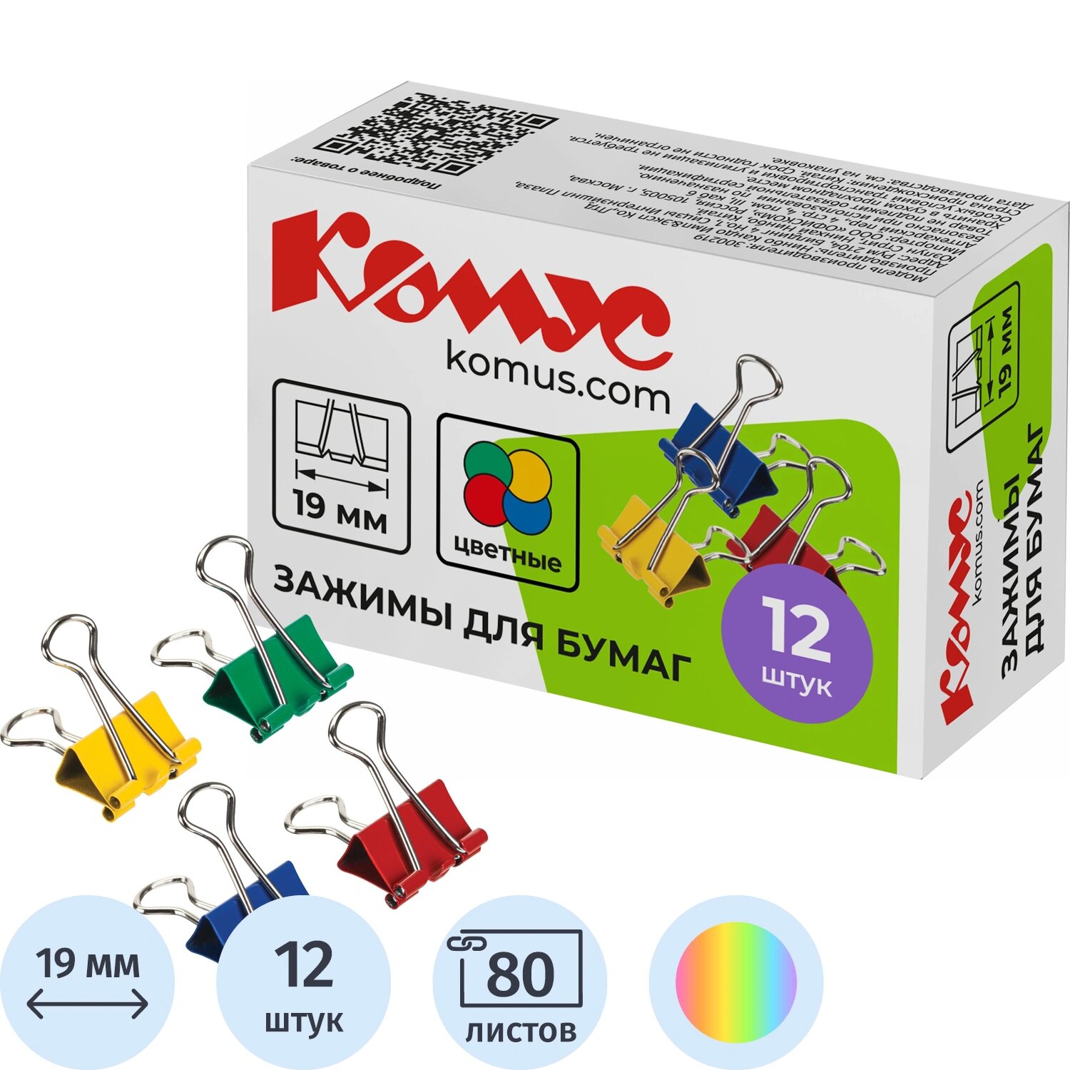 Зажимы для бумаг 19мм 12шт./уп. Комус цветные, картон интересное: