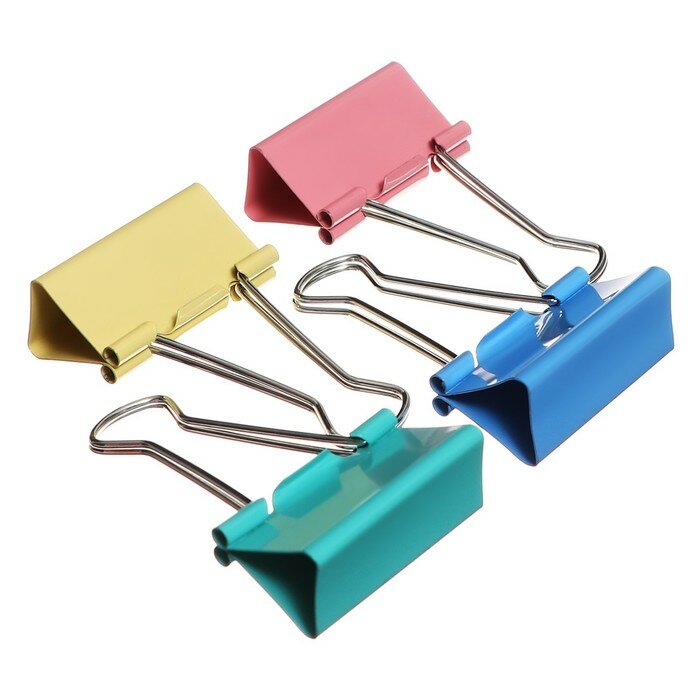 Набор зажимов для бумаг пастель 51мм, 12 штук, 4 цвета, в картонной коробке