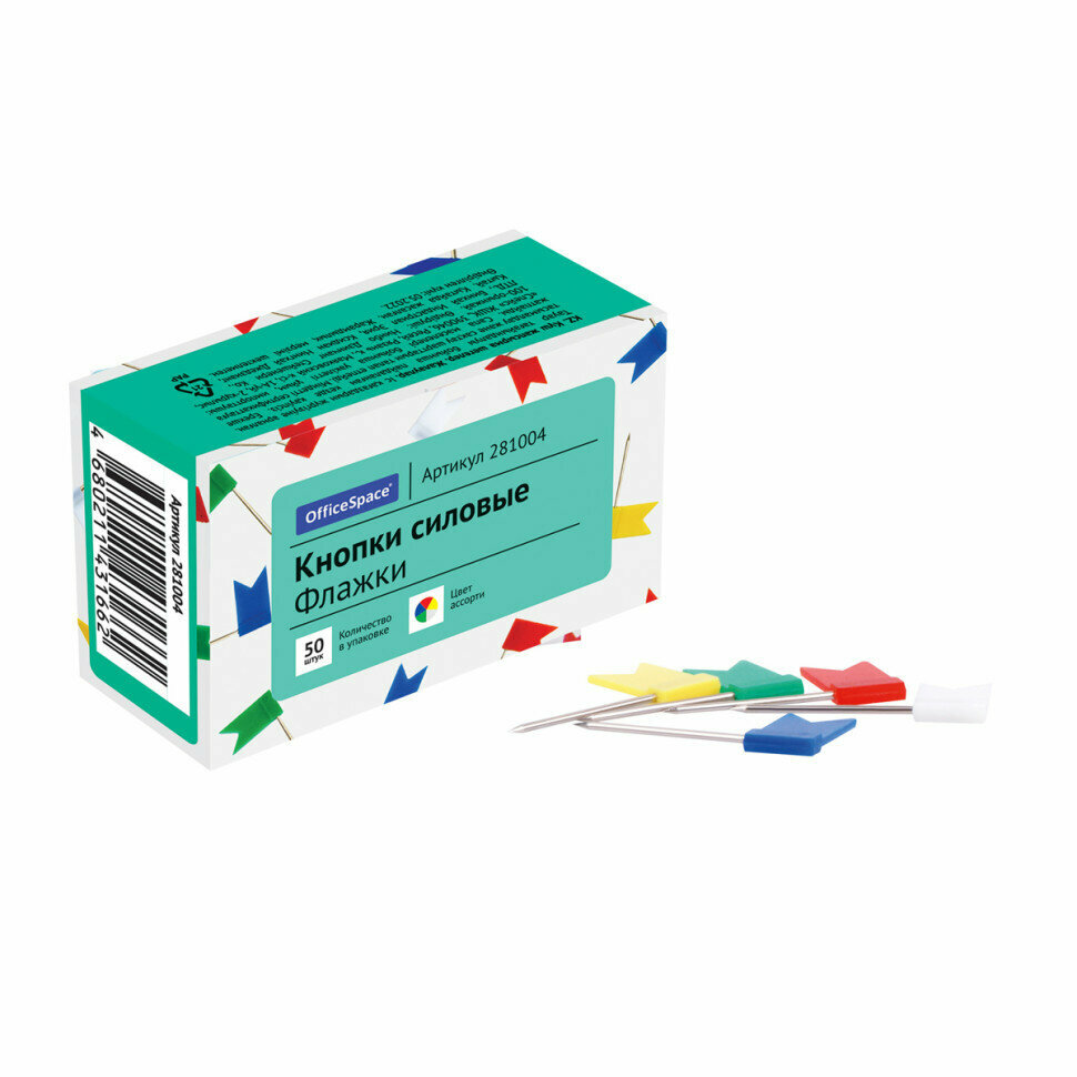 Купить Кнопки силовые/флажки OfficeSpace, 50шт, ассорти, карт. упаковка, 281004