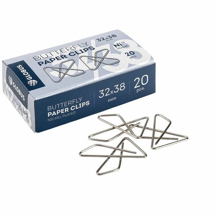 Globus Скрепки Бабочки, 32 x 38 мм, никелированные, серебро, 20 шт/уп, 2 шт интересное: