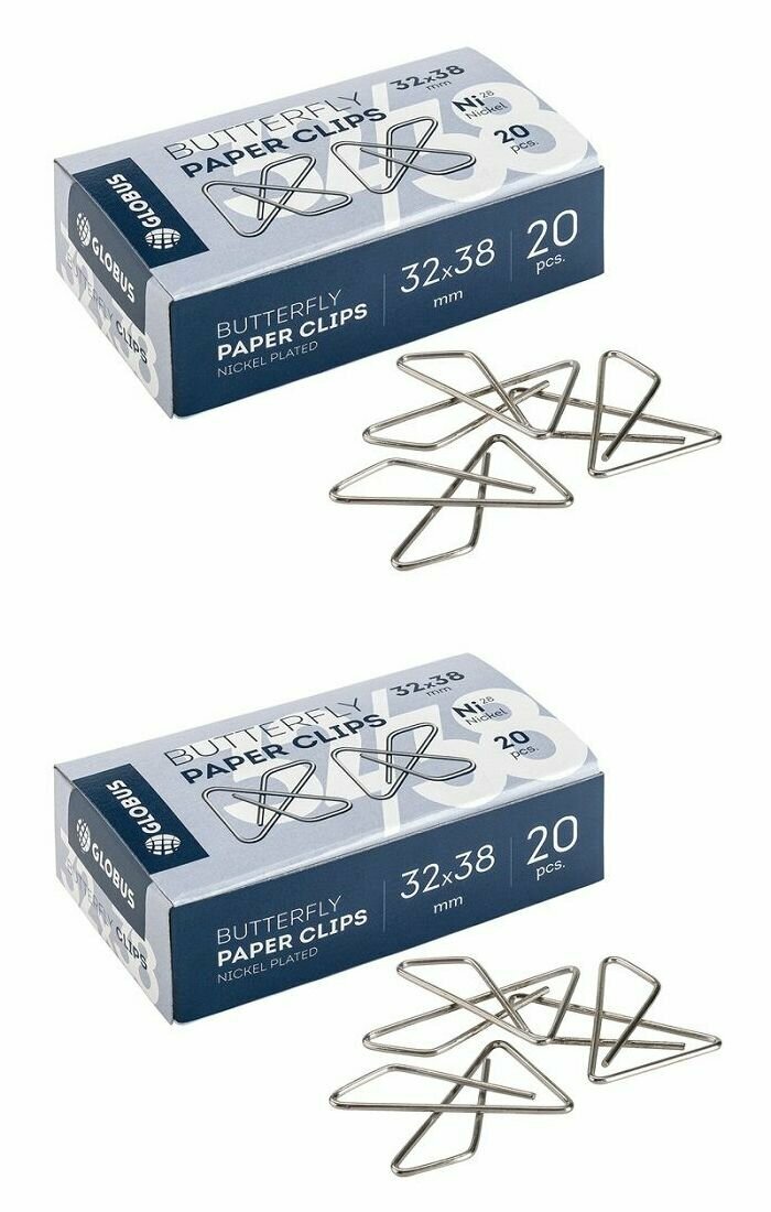 Купить Globus Скрепки Бабочки, 32 x 38 мм, никелированные, серебро, 20 шт/уп, 2 шт