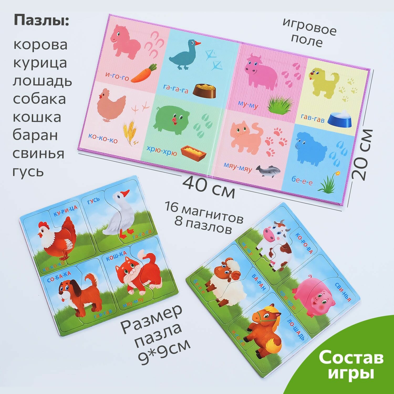 Купить Настольные магнитные пазлы Бигр Домашние животные, развивающие УД107