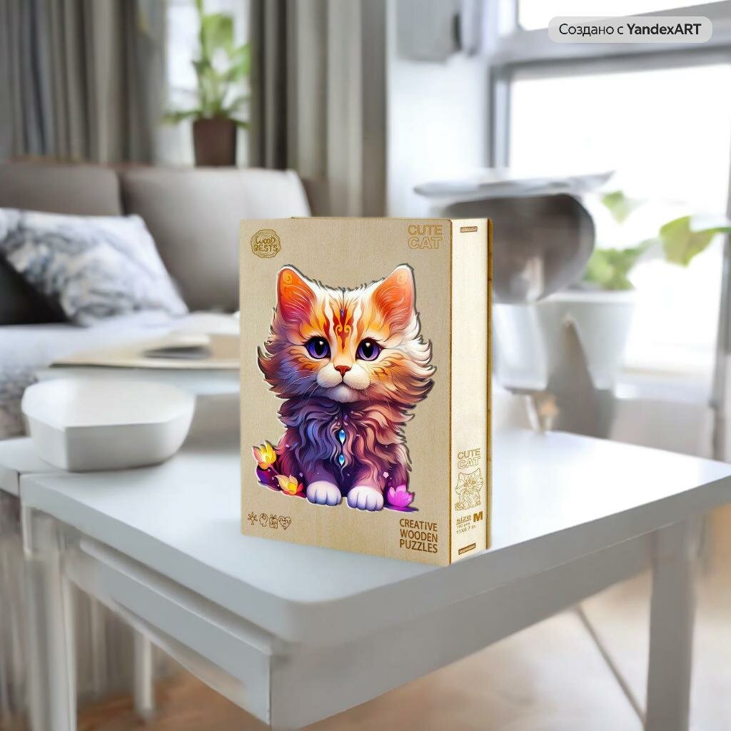 Деревянный 3D пазл Woodbests Фэнтези кэт S / 16 x 20 см / 90 деталей интересное: