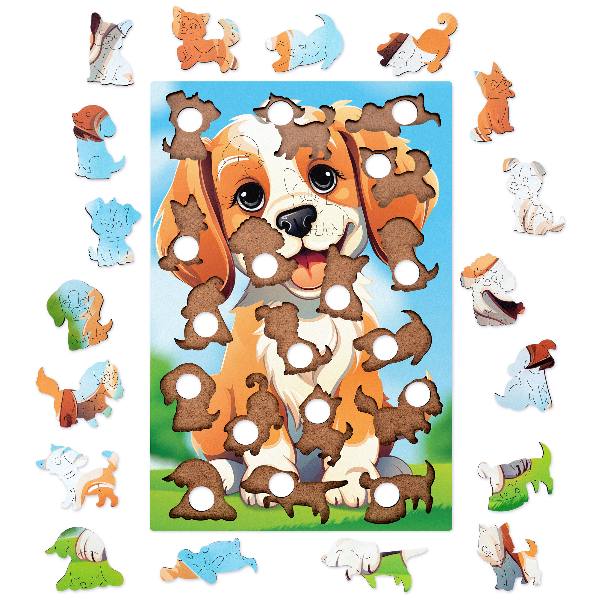 Деревянные пазлы для малышей и детей/Любопытный Щенок/головоломка/настольная игра интересное: