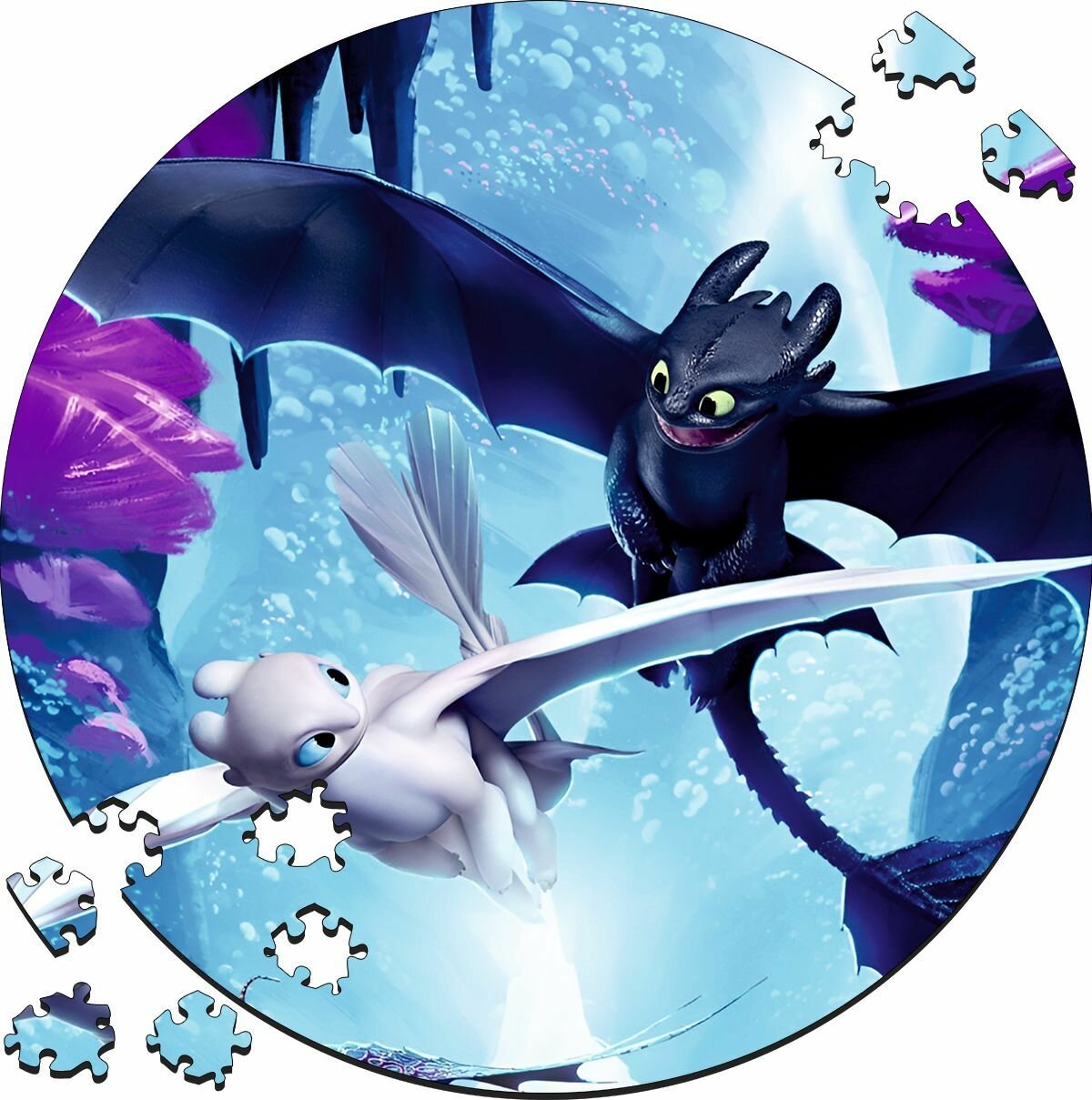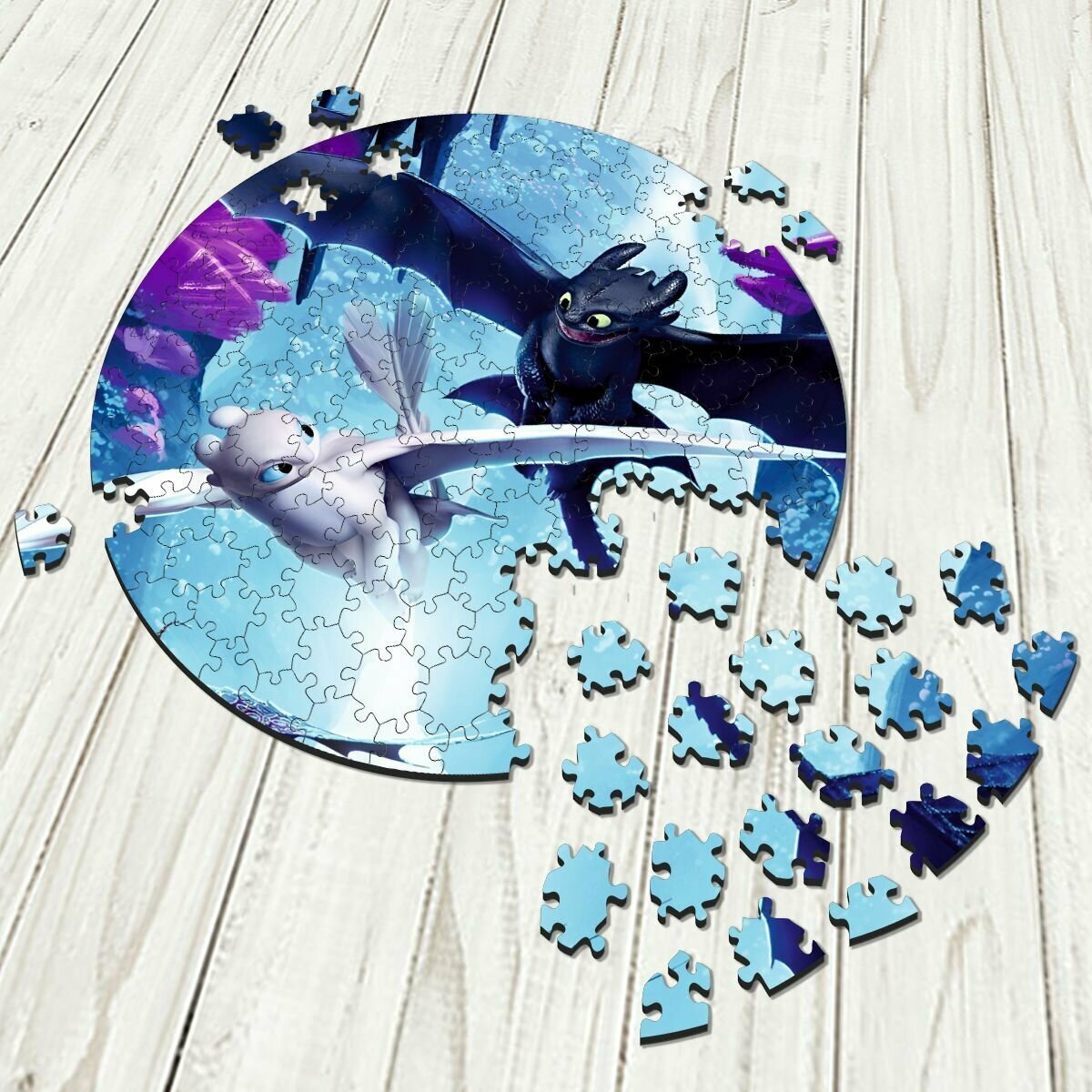 Деревянный пазл картина на стену Как приручить дракона Беззубик и Белая фурия 169 деталей 30х30см с системой приклейки интересное: