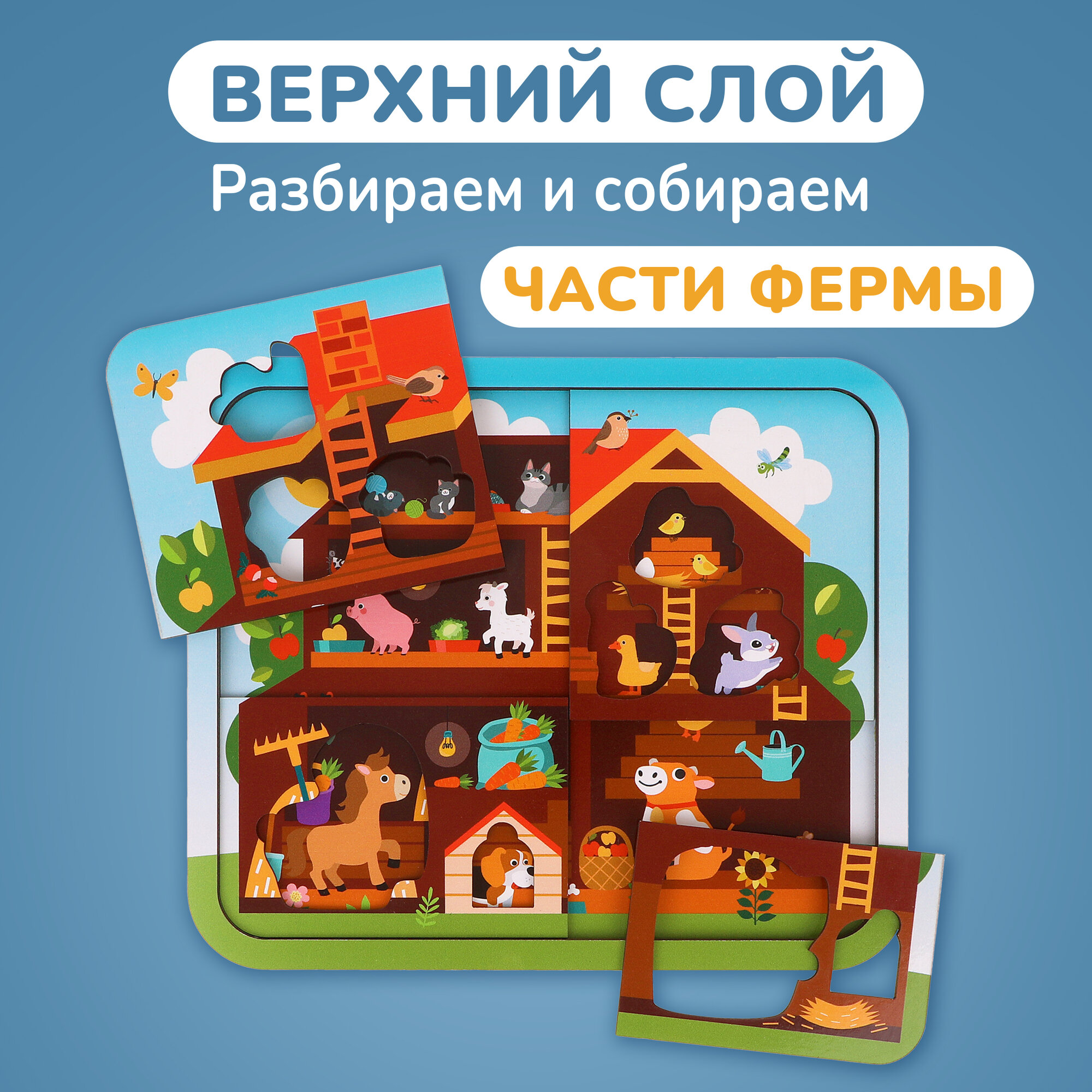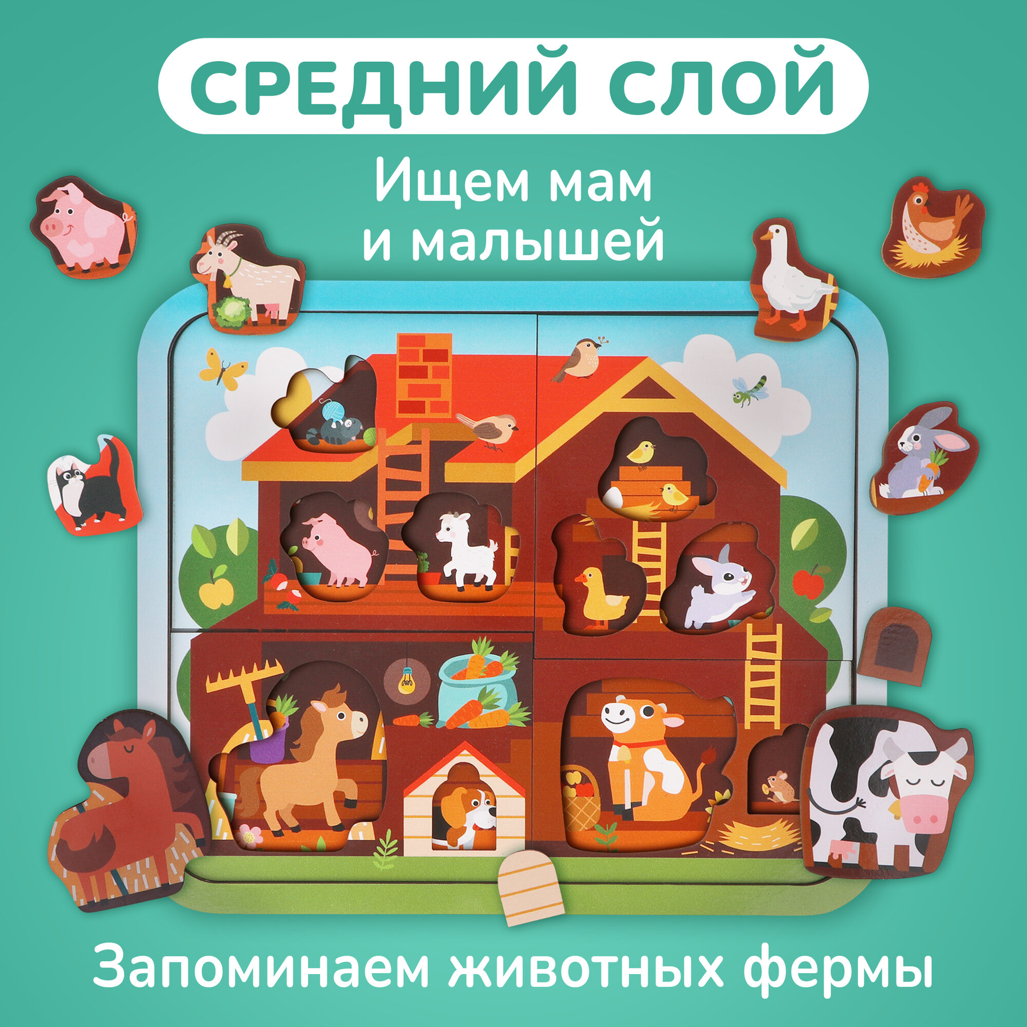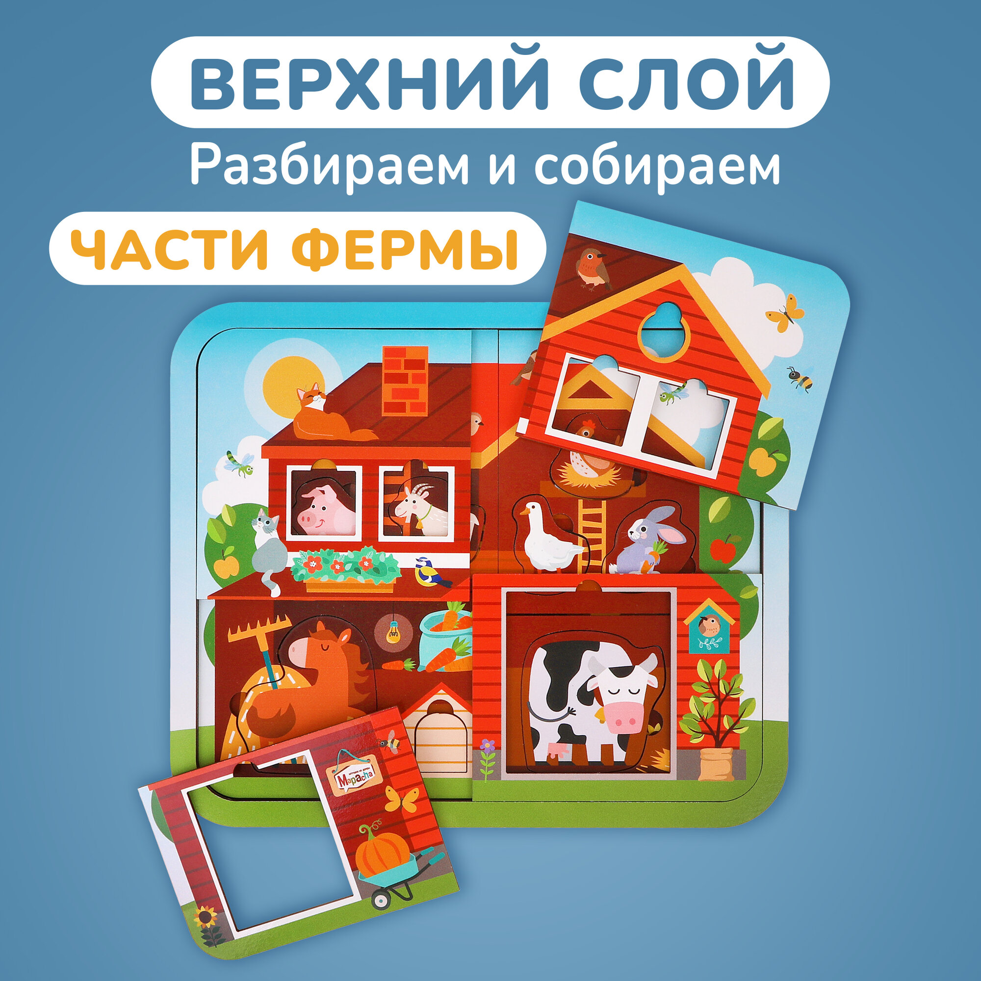 Пазл Mapacha "Кто живёт на ферме?", деревянный, 25 элементов, от 3 лет интересное: