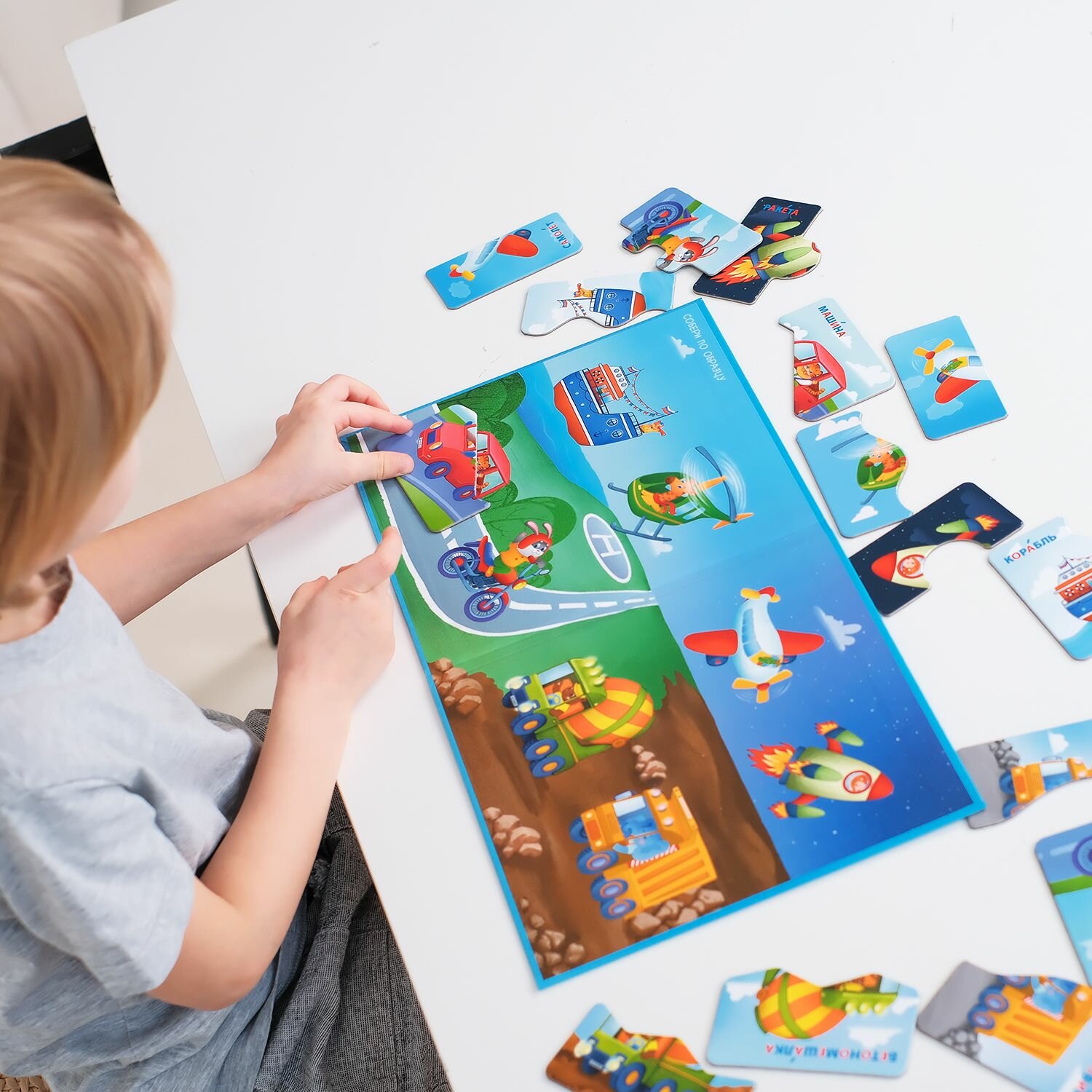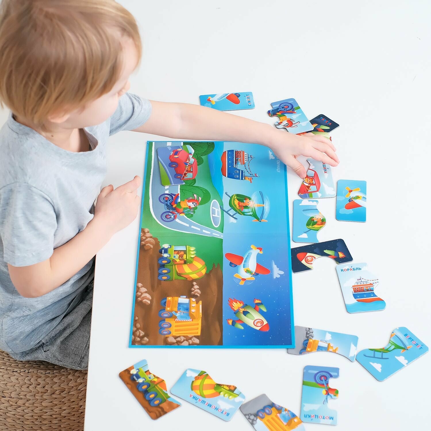 Купить Настольная магнитная игра Бигр Пазлы половинки Транспорт УД111
