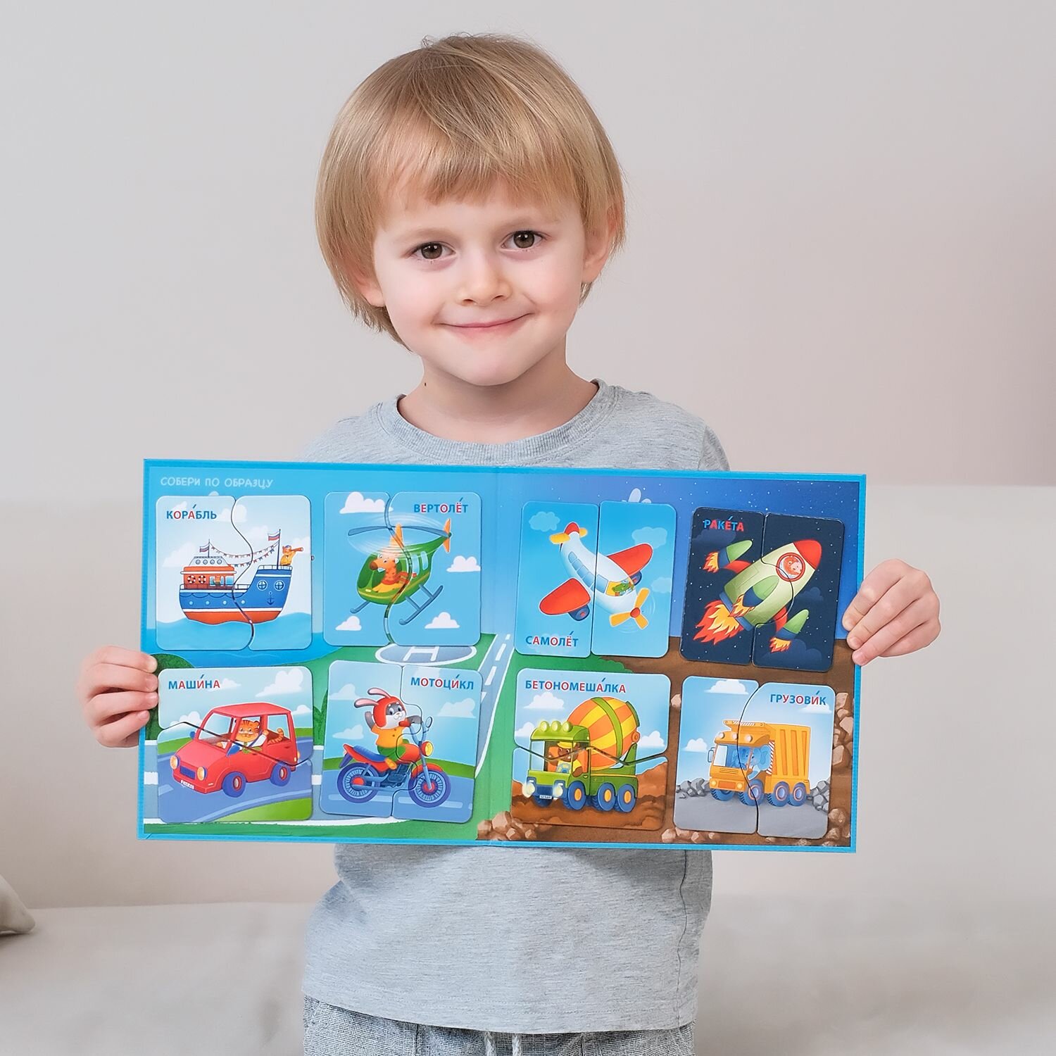 Настольная магнитная игра Бигр Пазлы половинки Транспорт УД111 интересное:
