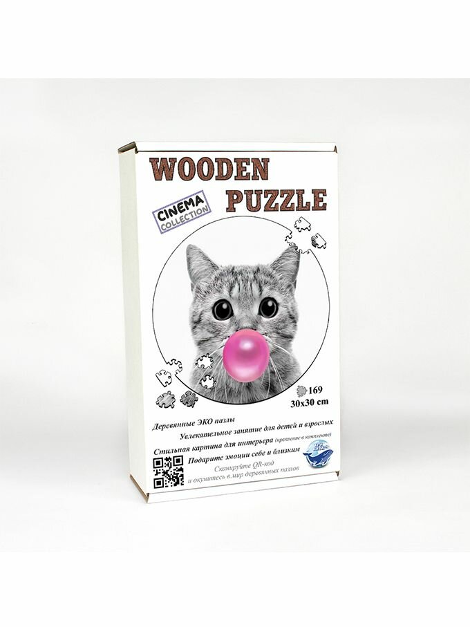 СохранитьДеревянный пазл картина на стену Котик с жвачкой 169 деталей 30х30см интересное: