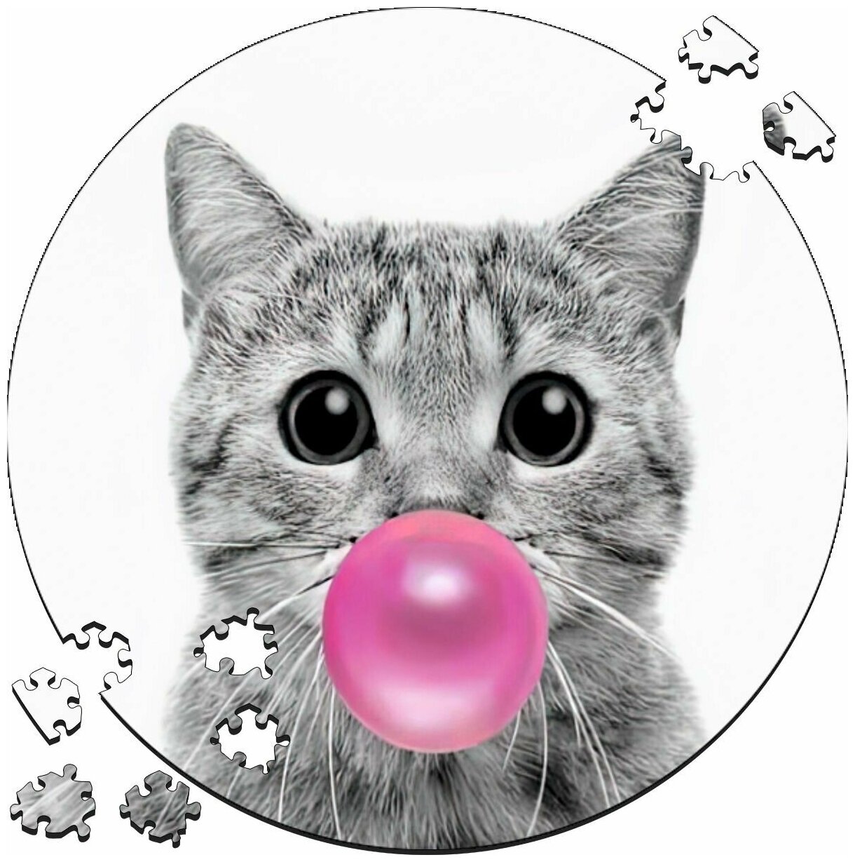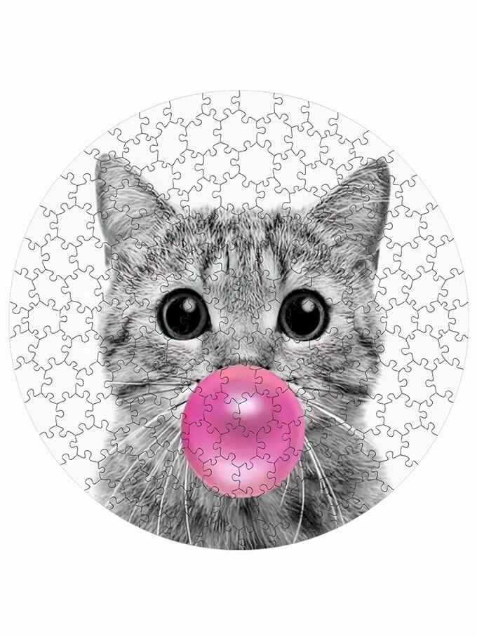 Купить Деревянный пазл картина на стену Котик с жвачкой 169 деталей 30х30см