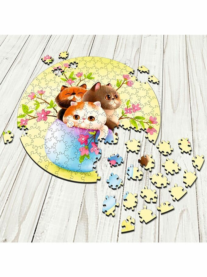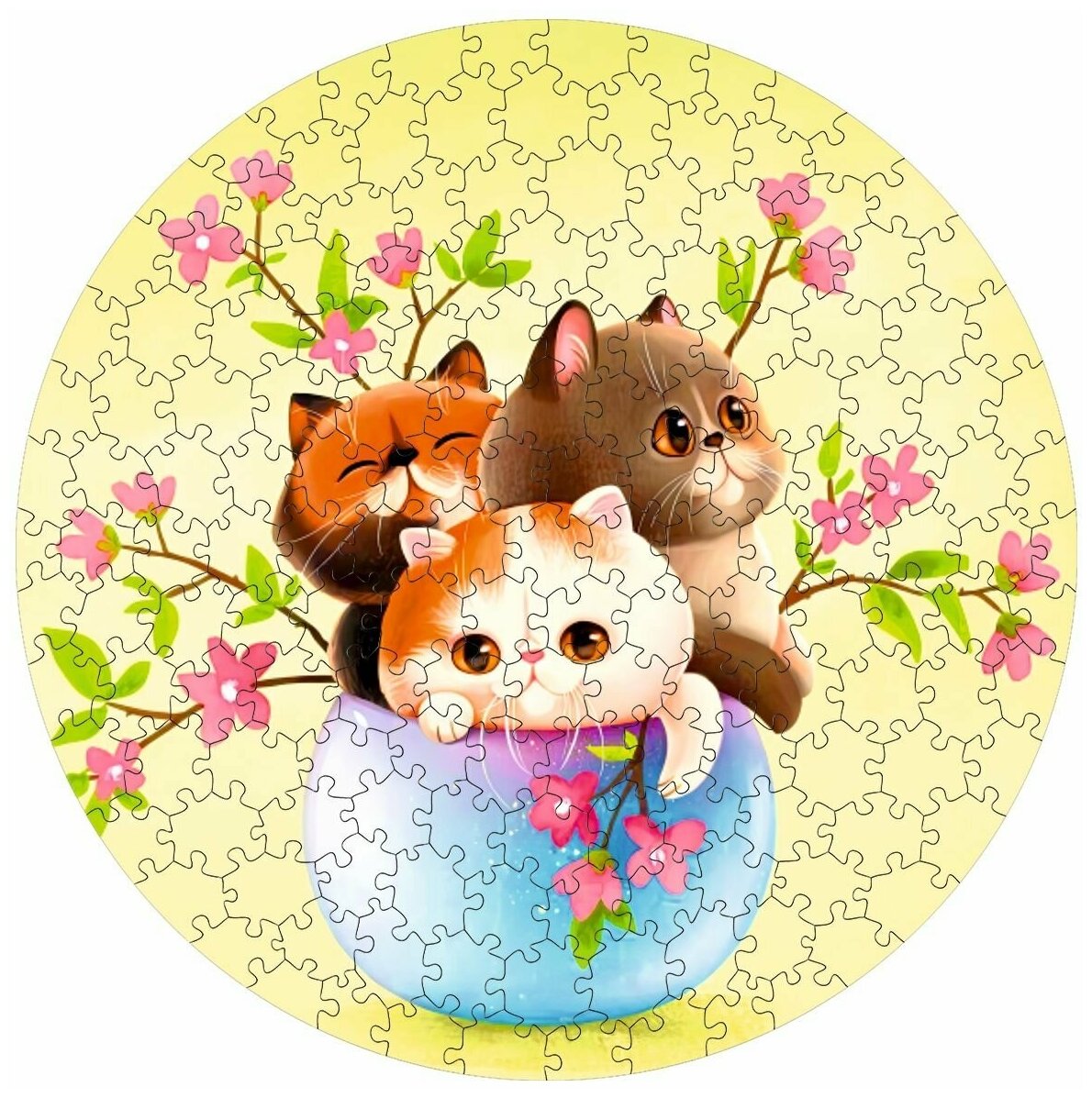 Купить Деревянный пазл картина на стену Котики в кружке 169 деталей 30х30