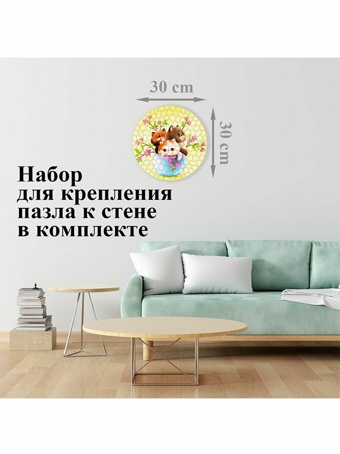 СохранитьДеревянный пазл картина на стену Котики в кружке 169 деталей 30х30 интересное: