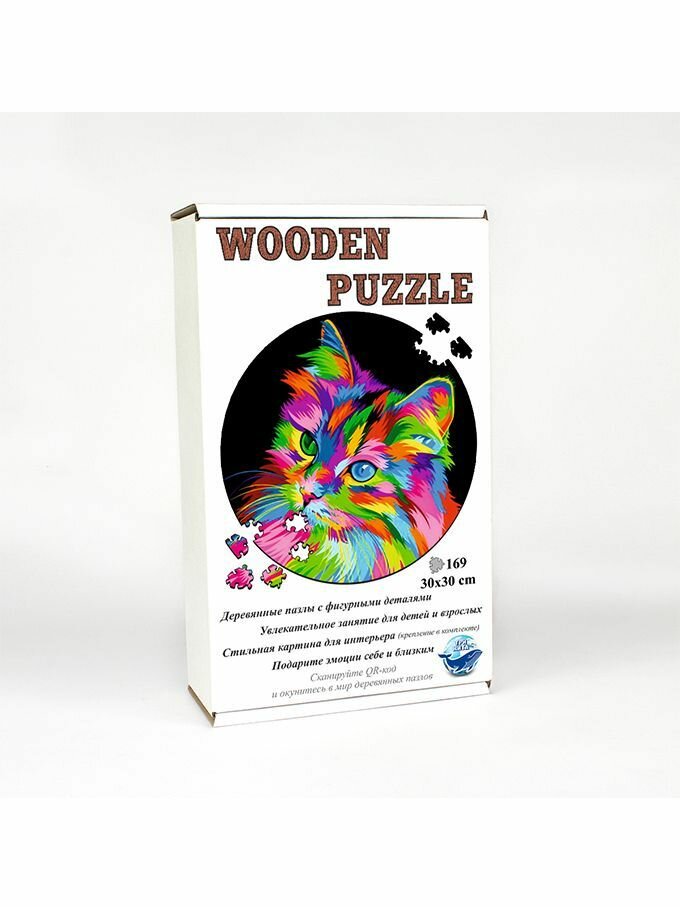 СохранитьДеревянный пазл картина на стену Радужный котик 169 деталей 30х30 интересное: