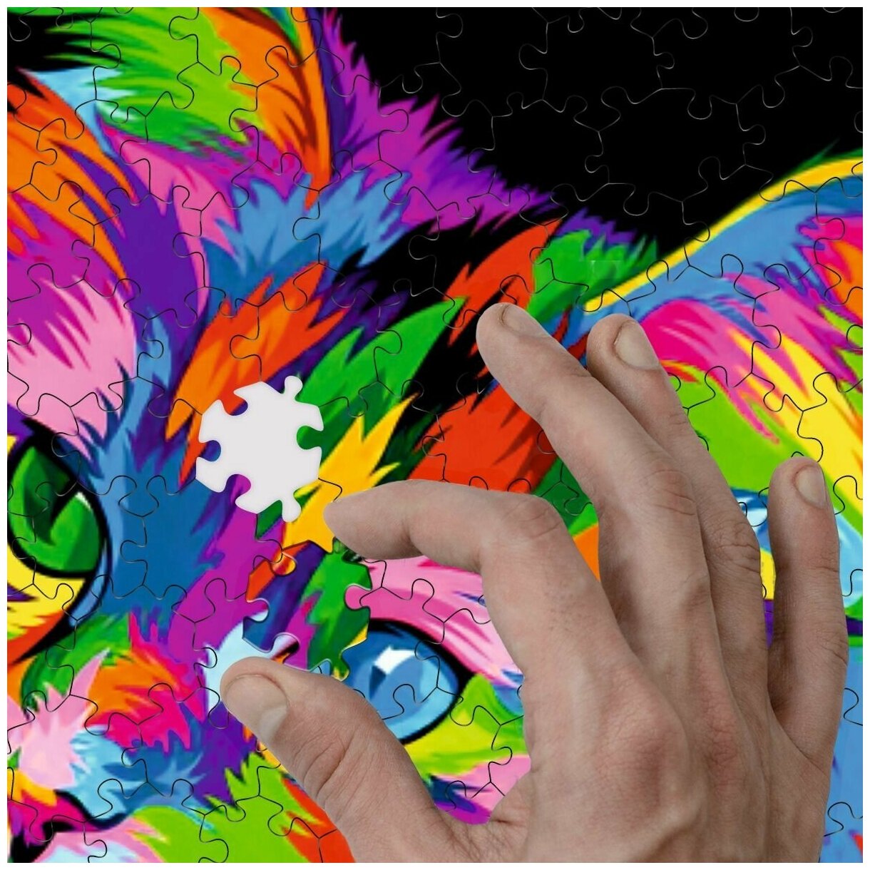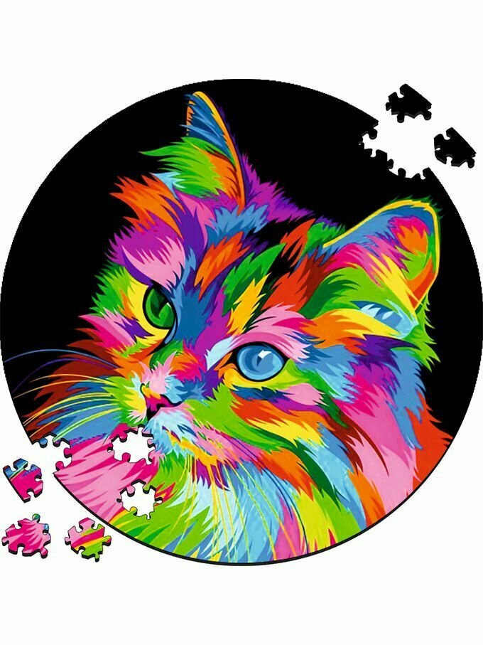 Купить Деревянный пазл картина на стену Радужный котик 169 деталей 30х30