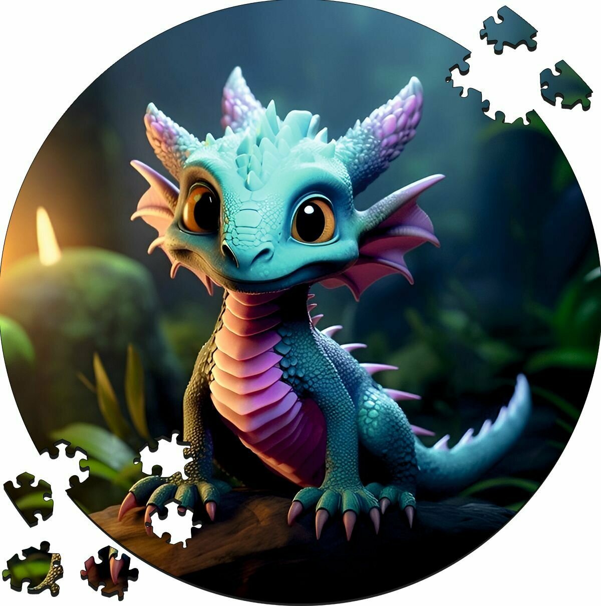 Купить Деревянный пазл картина на стену Дракончик в пещере 169 деталей 30х30см с системой приклейки