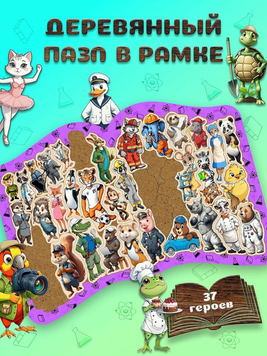 Деревянный пазл Sib.Pechatnik Профессии 37 деталей интересное:
