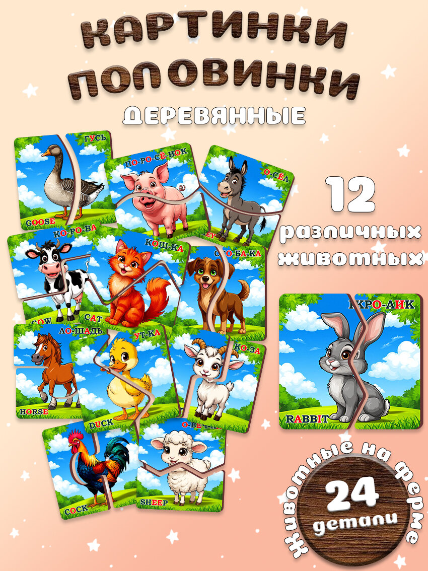 Пазлы половинки Sib.Pechatnik Животные на ферме интересное:
