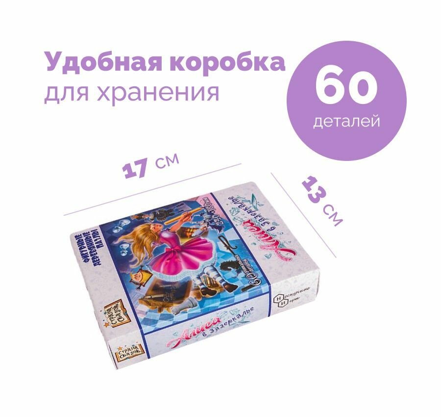 Деревянный пазл фигурный Страна сказок "Алиса в зазеркалье"/настольная игра для детей 3+ интересное: