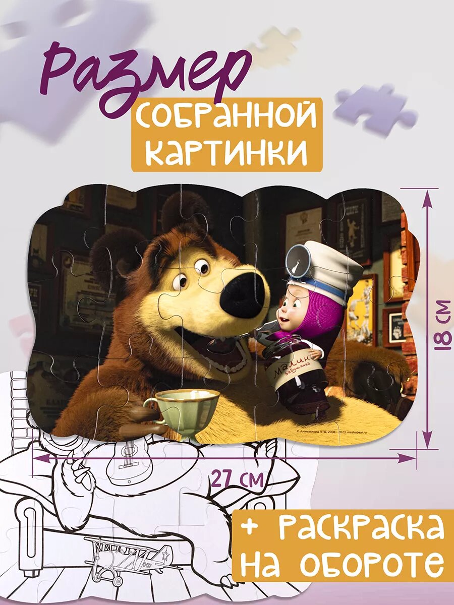 Купить Макси-пазлы для малышей, Step Puzzle Маша и Медведь с раскраской, 15 дет, развивашка для мальчика и девочки от 2 лет.