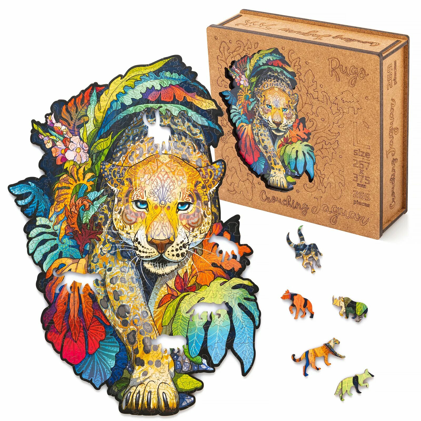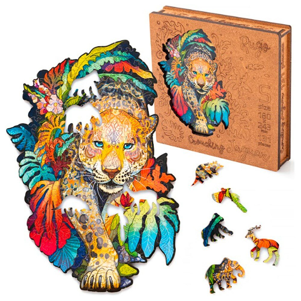Rugo Пазл деревянный «Ягуар», размер S — 18 × 24,3 см, 131 деталь интересное: