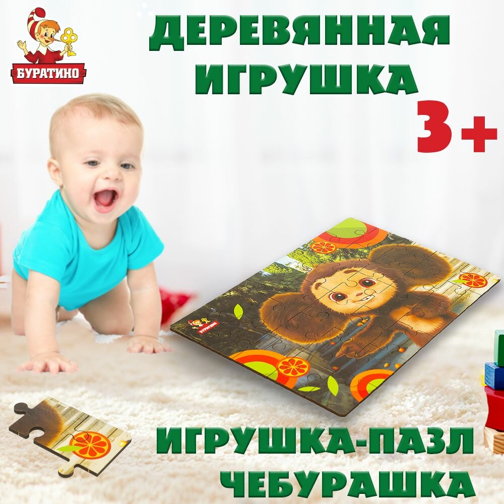 Купить Деревянный пазл для детей Чебурашка 30 детелей Буратино