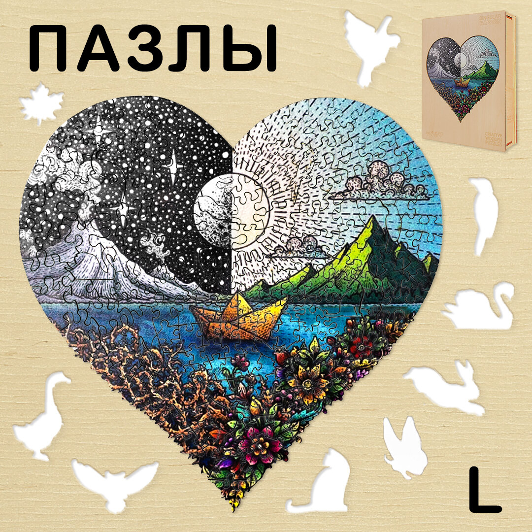 Купить Деревянный 3D пазл Woodbests День и ночь L / 33 x 34 см / 291 деталей
