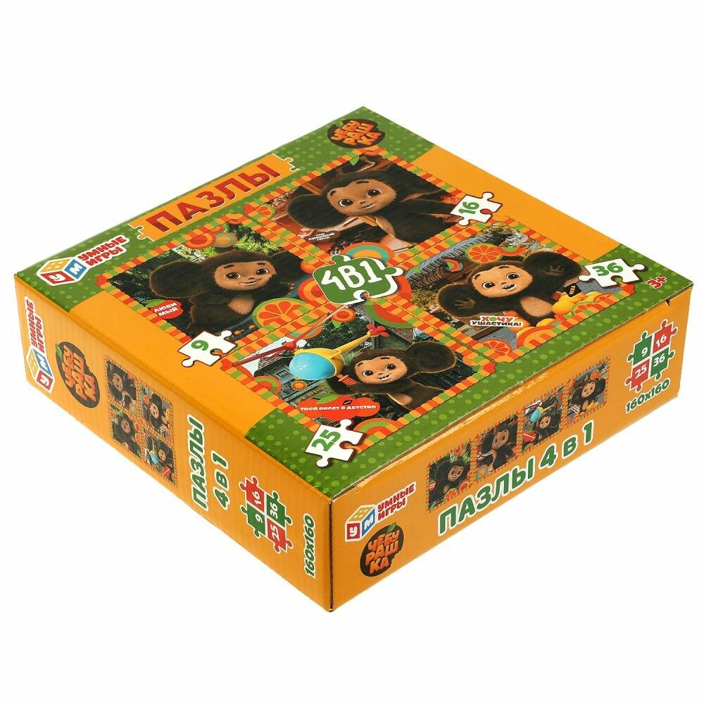 Купить Пазлы в коробке, набор 4 в 1: 9, 16, 25, 36 деталей Чебурашка Умные игры 4660254421608