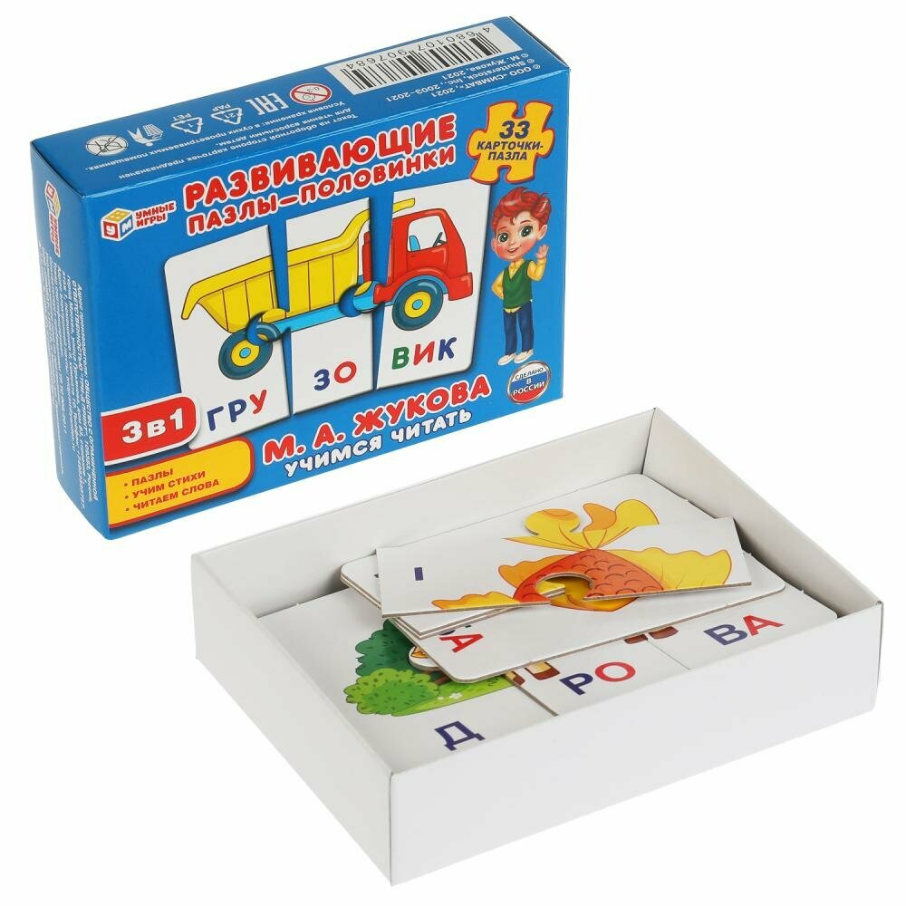 Развивающие пазлы-половинки 3в1 Учимся читать. М. А. Жукова. 33 карточки-пазла, Умные игры 4680107907684 интересное:
