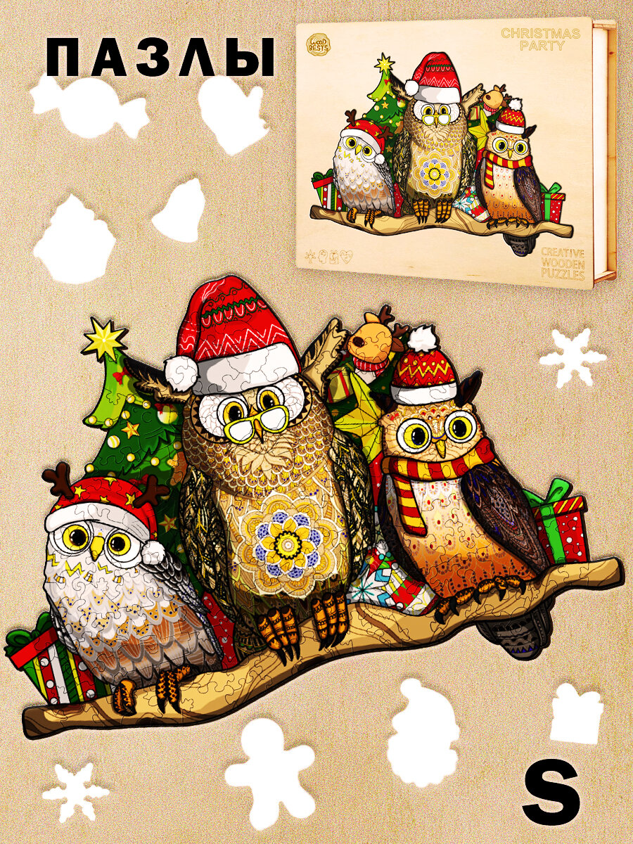 Купить Деревянный 3D пазл Woodbests 6510-WP Новогодняя Вечеринка S