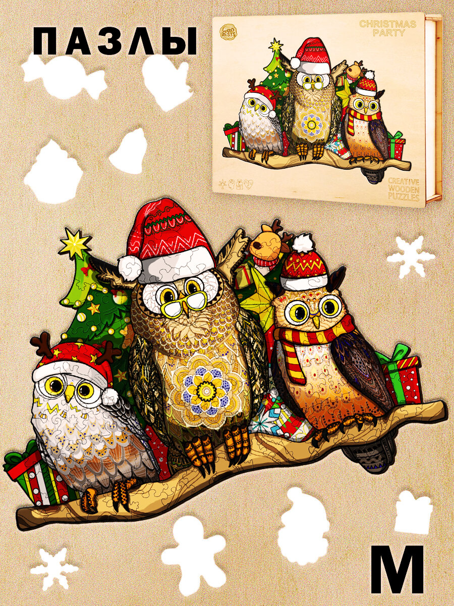 Купить Деревянный 3D пазл Woodbests 6511-WP Новогодняя Вечеринка M