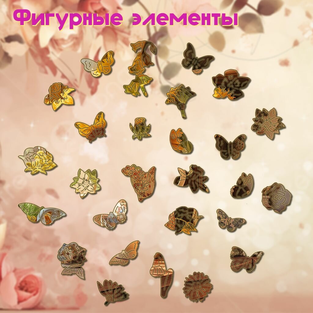 Деревянный пазл BoberBox "Деревенские Пионы", 224 деталей