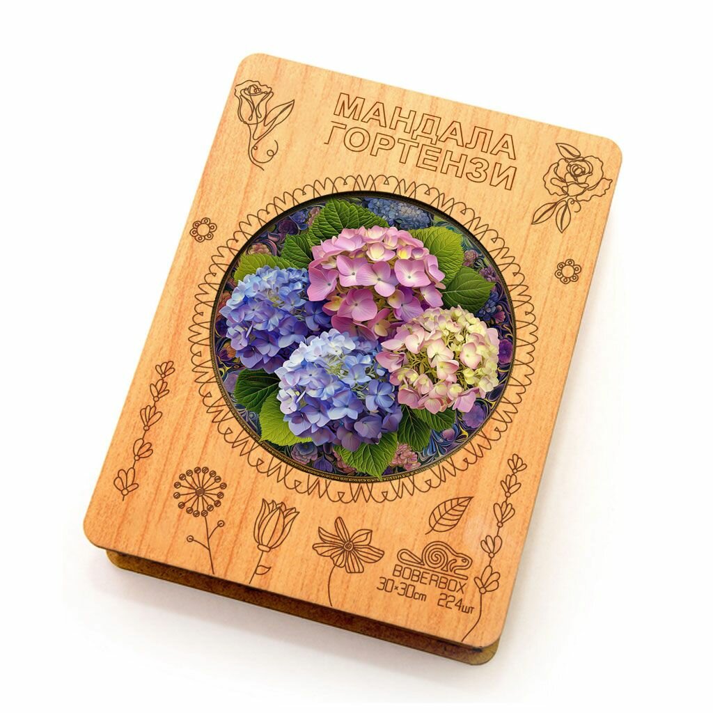 Купить Деревянный пазл BoberBox "Мандала Гортензия", 224 деталей