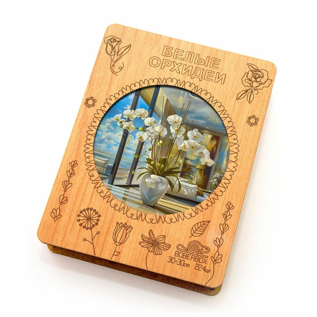 Купить Деревянный пазл BoberBox "Белые орхидеи", 224 деталей