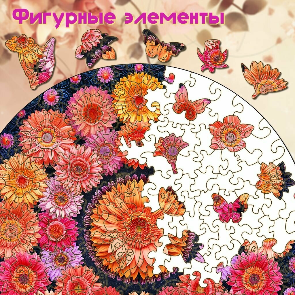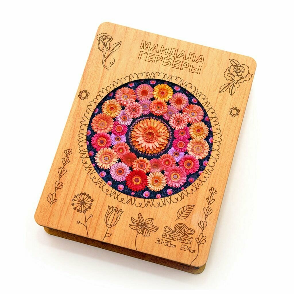 СохранитьДеревянный пазл BoberBox "Мандала Герберы", 224 деталей интересное: